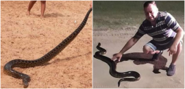 Luego de que un tiburón y una ballena espantaran a los turistas de las playas de Monte Hermoso, una anaconda amarilla apareció en la localidad de Piedras Blancas, Entre Ríos, y causó pánico entre quienes se estaban bañando a orillas del río. Afortunadamente, el guardavidas del balneario logró capturar al animal y se encargó de que el mismo fuera trasladado a un área natural protegida que existe en la zona. "Algunas de las personas que estaban disfrutando de nuestras playas durante el último fin de semana se alarmaron por la aparición de la curiyú. Ante esta situación, el cuerpo de guardavidas actuó de manera inmediata, capturándola y depositándola sana y salva en la reserva natural El Brete que es un área protegida", explicó el intendente local, Jorge Fabricio Gino Mesquida. "Queremos aclarar que esta especie de serpientes no son venenosas y no representan riesgos para las personas, siempre y cuando no las molesten ni les hagan sentir que están en peligro", detalló además. Y recomendó a la población: "Si las personas llegan a cruzarse con alguno de estos ejemplares, no las fastidien ni intenten hacerles daño. Se debe avisar inmediatamente a los guardavidas, quienes están capacitados para actuar en este tipo de situaciones".